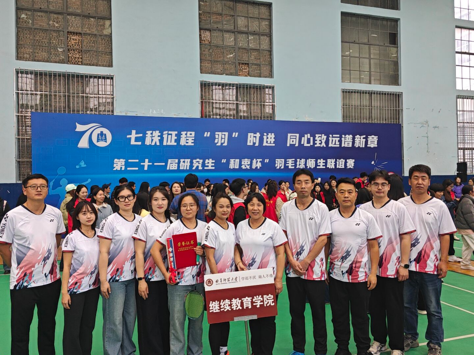 10月24—26日,东京热 师生参加东京热 第二十一届研究生“和衷杯”羽毛球师生联谊赛,东京热 派出 6名教师和6 名研究生组队参赛,并获得了体育道德风尚奖。比赛过程中,参赛队员努力拼搏,全力以赴,精诚团结,各自打出了自己的水平,展现出了昂扬向上的精神姿态和日趋进步的球队实力。本次比赛强化了师生沟通交流,强健了体魄,锻炼了意志,期待本次比赛助力推动全体师生的学习和教学科研工作,期待来年东京热 成绩更上层楼。