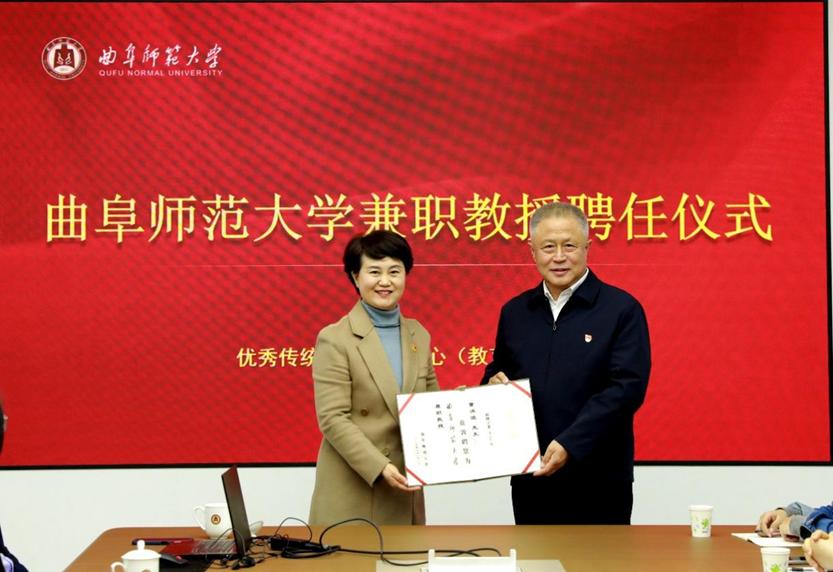 联合举办了“强化文化引领,服务社会发展”主题党日活动暨兼职教授聘任仪式。曲阜市政协主席董洪波受邀担任学校兼职教授并出席活动,两单位全体师生党员以及教职工代表共同参加活动,活动由优秀传统文化教育中心(教育培训中心)副主任邢春雷主持。